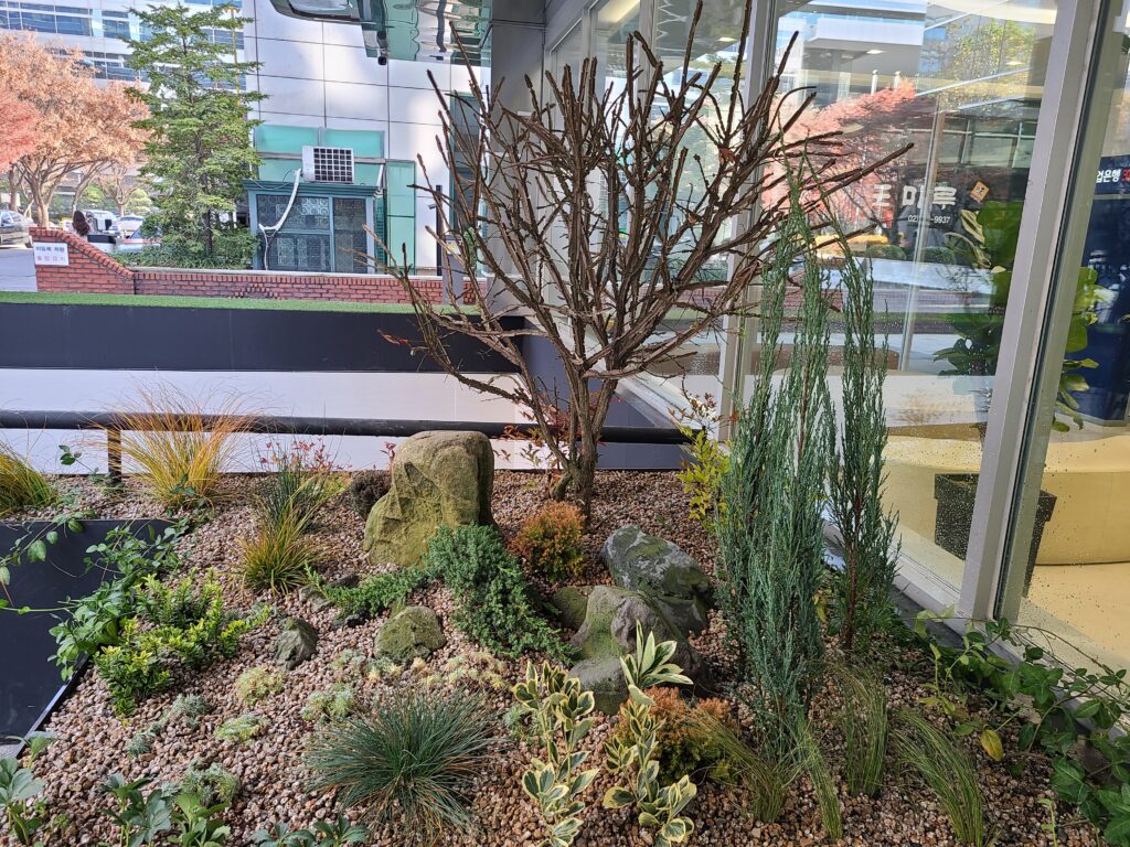 전체 공사 보기 수공간 조경 조경 공간의 생동감을 표현하기에 적합한 벽천, 연못 등 물의 요소 전주 효자동 테이블 연못 조경 전남대 치과병원 벽천 김득신 문학관 벽천 남양주 테이블 조경 가로수길 오피스 연못 조경 강서도서관 옥상 연못 조경 벽면녹화 건축물의 수직공간에 식물을 도입한 플랜테리어 대구시청 벽면녹화 서울시청 벽면녹화 포스코 인천송도 클럽하우스 벽면녹화 및 실내조경 영등포구 우신초등학교 벽면녹화 광교 벽면녹화 및 벽천 의정부 과학도서관 벽면녹화 실내조경 식물과 자갈,암석등을 다채롭게 사용하여 실내공간을 구성하는 플랜테리어(조화 & 생화) 성남시청 실내조경 롯데인재개발원 실내조경 (조화&생화) 워커힐 아카디아 실내조경 서울대 실내조경 진주LH 실내조경 일본식 조경 실외조경 자연 친화적인 요소를 외부공간에 도입하여 시선 및 주공간으로 진입 유도, 계절감을 느낄 수 있는 조경 익선동 카페조경 1_한옥랑솜 익선동 카페조경 2_몽블랑솜 현무암 암석조경 미아사거리 암석정원 미니정원 일본식 조경 주택정원 옥상조경 건축물의 인공지반에 식재 및 조경요소 도입, 자연 친화적인 힐링공간 동양웨딩홀 옥상조경 고영테크놀러지 옥상조경 KT양재지사 옥상조경 성남시청 5층 중정 대검찰청 옥상조경 동양웨딩홀 옥상조경(생태연못) 조경관리 수목 전정 작업 , 예제초, 병해충 관리 등 전반적인 조경관리 가로화단의 소나무 전정작업 소나무 전정작업 관목 전정작업 행주서원지 예초작업